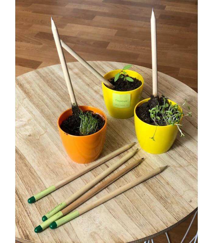 - Квітучі олівці. З них можна виростити мелісу, ромашку, шавлію чи навіть моркву або помідор.